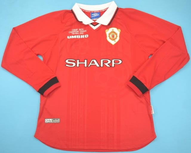 LINHA RETRÔ > MANCHESTER UNITED > CAMISA RETRÔ MANCHESTER UNITED (INGLATERRA) 1999 - FINAL CHAMPIONS LEAGUE - UNIFORME 1 MANGAS LONGAS
